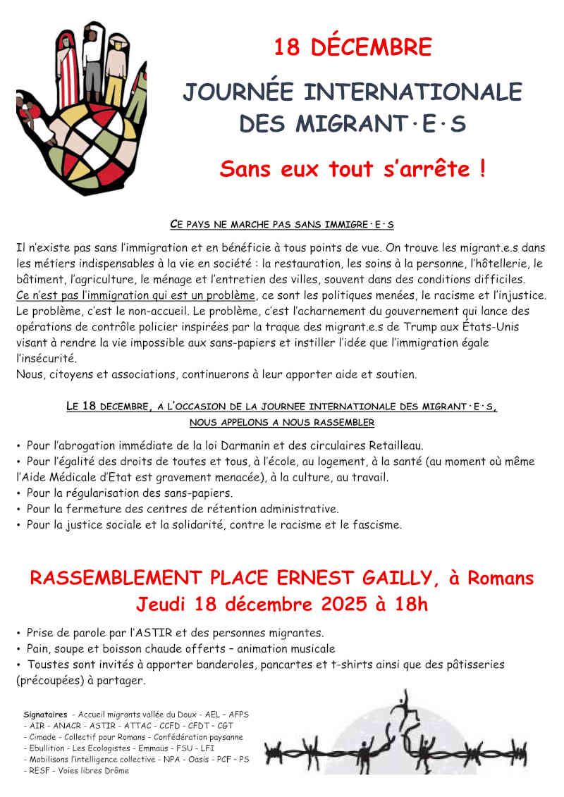 LE 18 DECEMBRE, A L'OCCASION DE LA JOURNEE INTERNATIONALE DES MIGRANT·E·S, NOUS APPELONS A NOUS RASSEMBLER