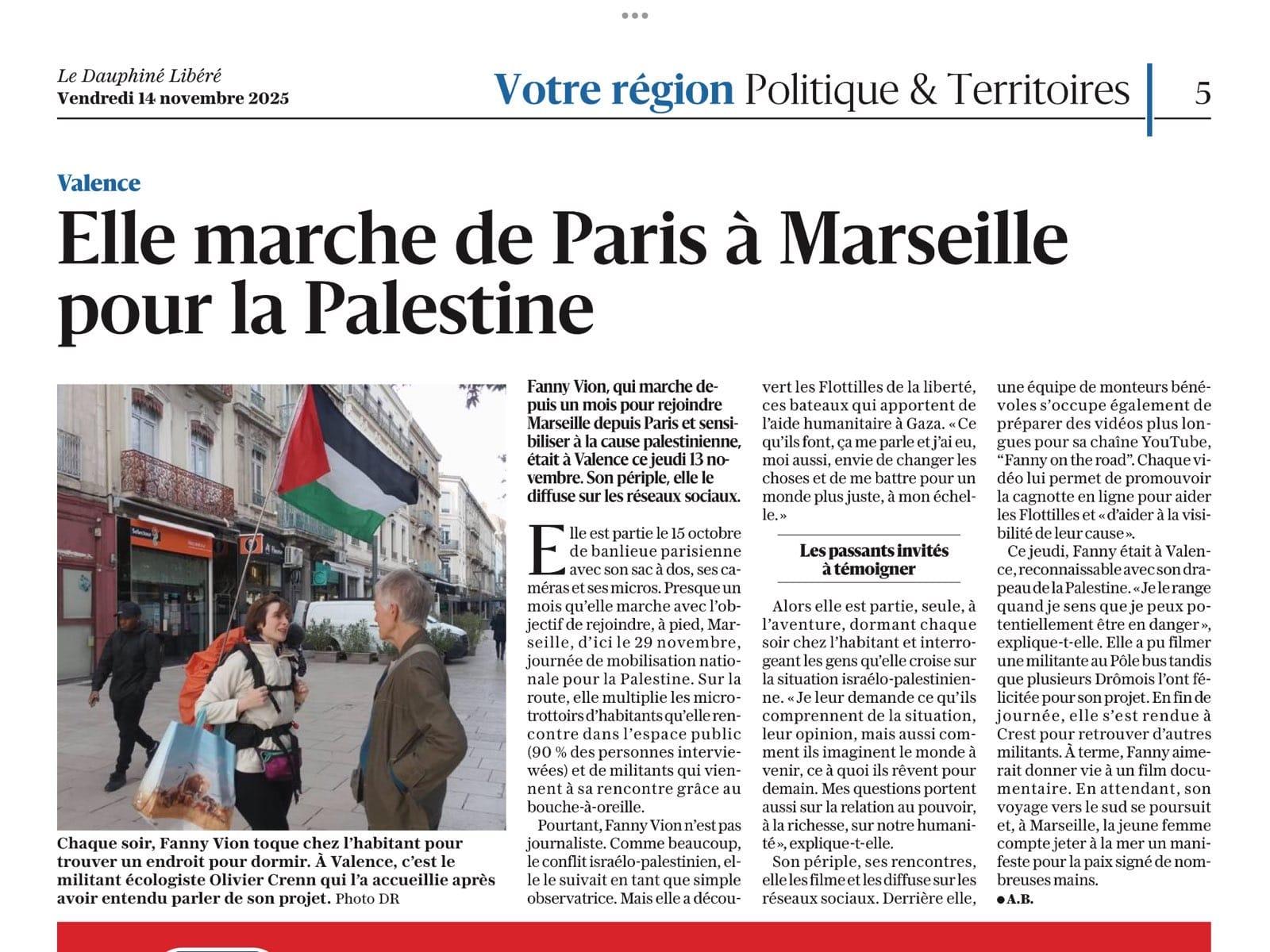 Fanny est partie à pied de Paris le 14 octobre 2025, elle arrivera à Marseille le 29 novembre.